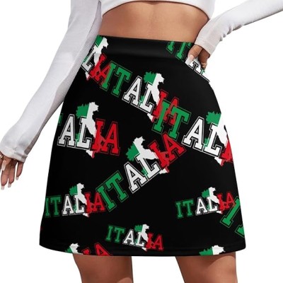 Italia Flag Colors Italia Map Women's Mini Skirts High Waist Short Skorts Casual A-line Skirt