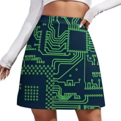 Circuit Board Pattern Women's Mini Skirts High Waist Short Skorts Casual A-line Skirt