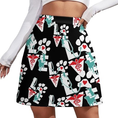 Veterinarian Love Cat and Dog Veterinary Women's Mini Skirts High Waist Short Skorts Casual A-line Skirt