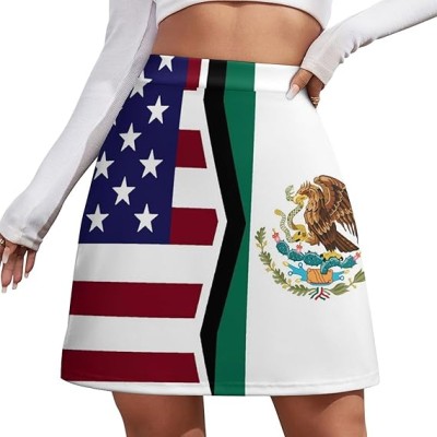 U.S.A Mexican Flag Women's Mini Skirts High Waist Short Skorts Casual A-line Skirt