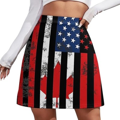 U.S.A Canadian Flag Women's Mini Skirts High Waist Short Skorts Casual A-line Skirt