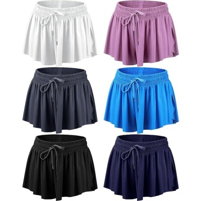 6 Pcs 2 in 1 Flowy Running Shorts with Pockets Butterfly Gym Shorts Summer Women Workout Yoga