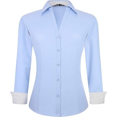 Womens Button Down Shirts Long Sleeve Regular Fit Stretch Work Blouse