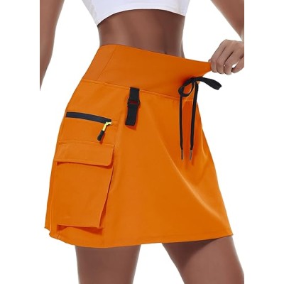 Women's Hiking Cargo Skort Skirt High Waisted Golf Dressy Casual with Zipper Pockets Workout Sport Quick Dry Skirts