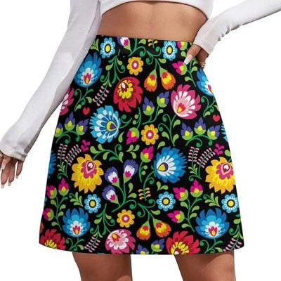 Polish Floral Folk Art Poland Flowers Women's Mini Skirts High Waist Short Skorts Casual A-line Skirt