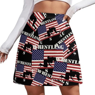 Wrestling U.S.A. Flag Women's Mini Skirts High Waist Short Skorts Casual A-line Skirt